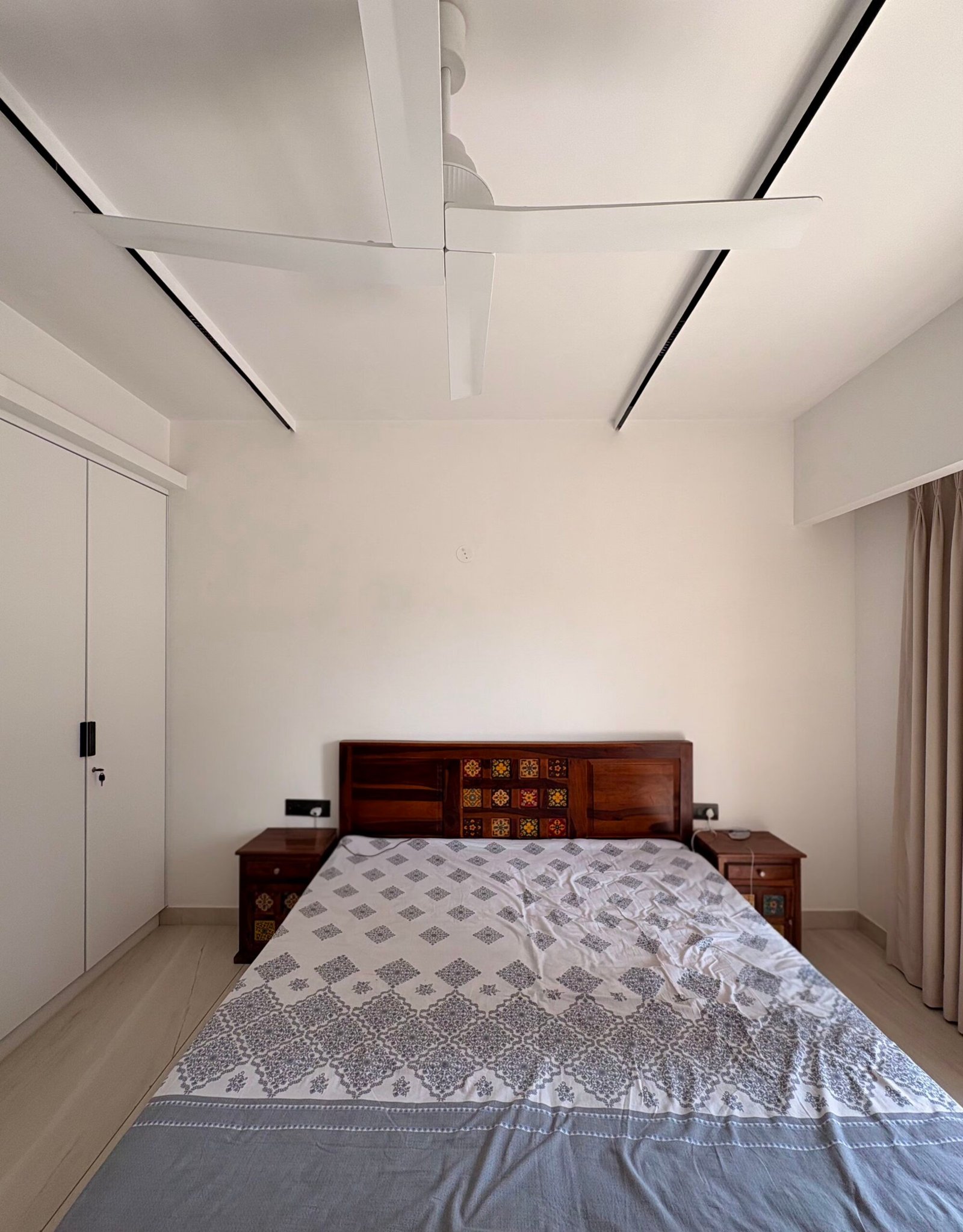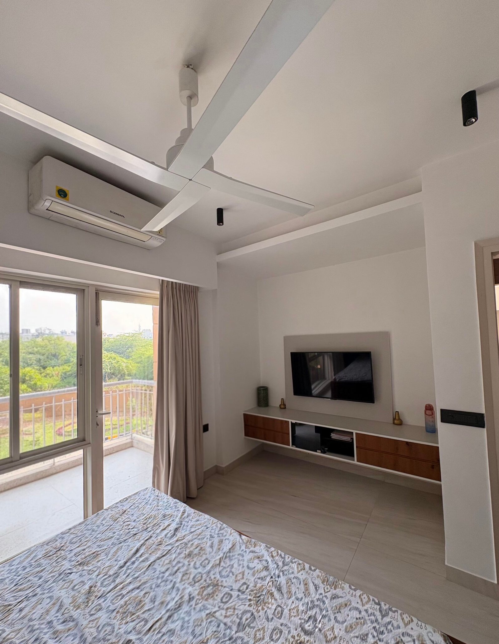 * Highlights: Open layout, natural light, minimal false ceiling, bar counter, Mandir space, handmade artwork