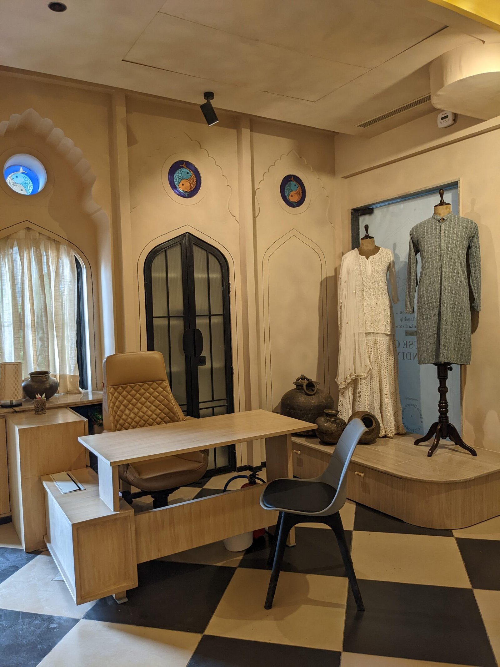 The requirement is creating a store for a brand House of Nandini, which works closely with the craftmen of Lucknow. The store is based on the entry by invitation concept. So there is no exectation of direct casual store footfall. All the visit are preplanned and by invitations only & would be for the customers from Local NCR area or the one buying bulk stuff for internaltional markets.