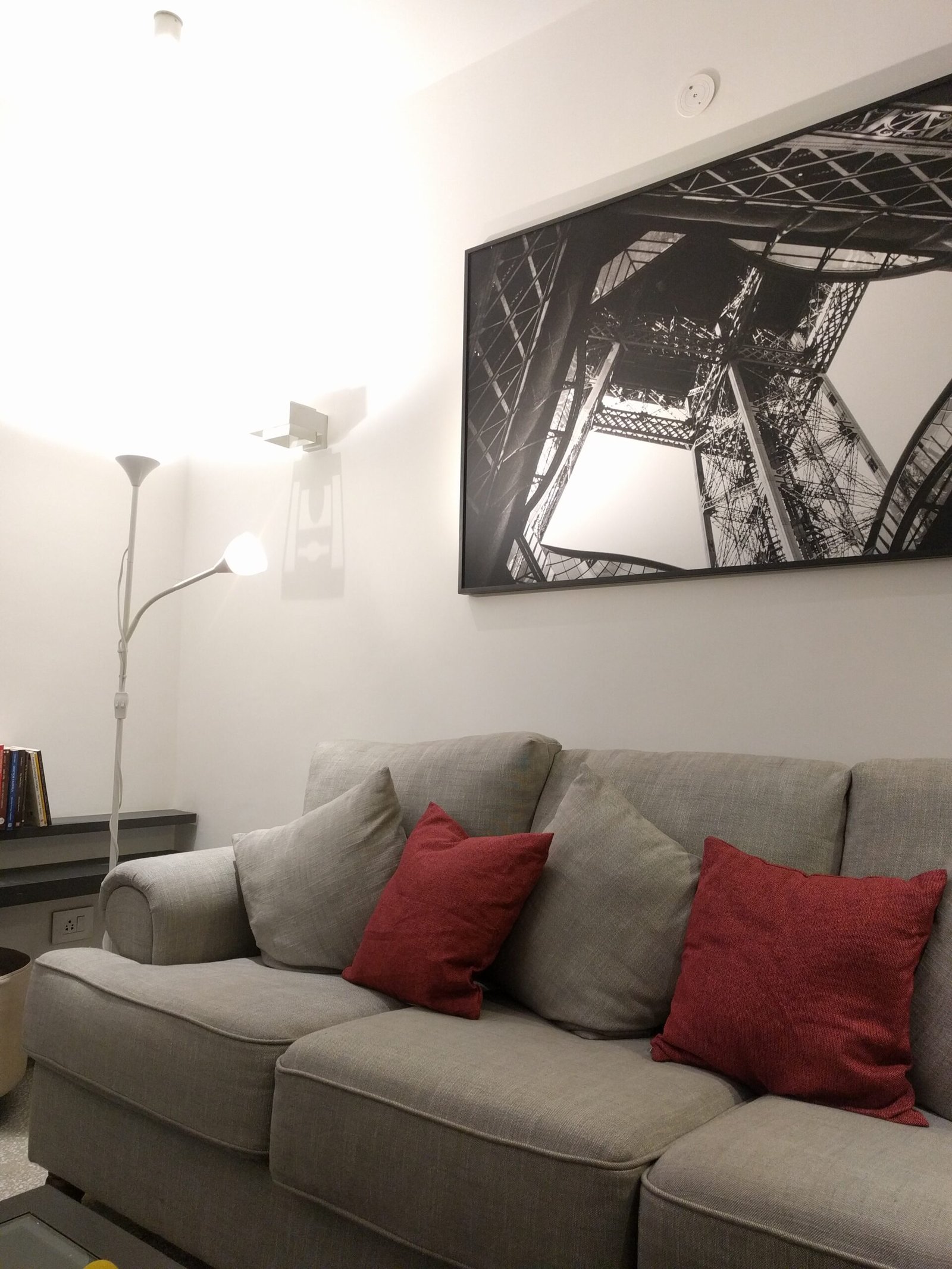 The interiors of the space had to be merged with the already existing flooring, leaving behind the possibility of using bright and contrasting only through accents and decors.